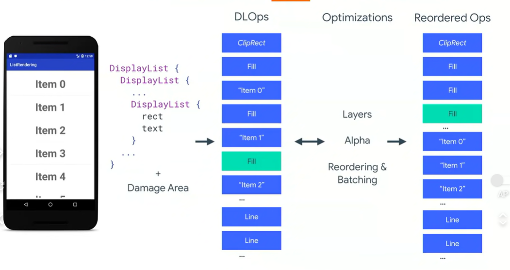 싱크가 완료되면, DLOps (display list operation)에서 optimization을 수행한다. 그리고 이제 Reordered Ops에서 그 순서가 재조정된다.